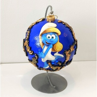 Na pięknym, intensywnie niebieskim tle znalazły się ulubione postacie z bajki Smerfy. Z jednej strony bombki pojawia się Smerfetka – pełna wdzięku i uroku, a z drugiej Ważniak – charakterystyczny, zadziorny i niezastąpiony.