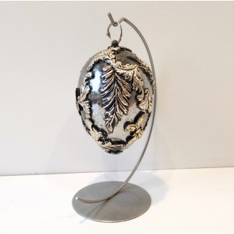 Cena 86,00 złLustrzane akrylowe jajo na nodze z reliefami, które zostały pokryte płatkami srebra. Bombka pokrywana jest od środka odczynnikami dającymi efekt lustra. Dodatkowo użyto tutaj kryształków.
