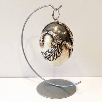 Cena 79,00 złLustrzane jajo z płatkami srebra. Całość została wykonana na akrylowej bazie. Wewnętrzna strona produkty została pokryta preparatem, który daje efekt lustra. Reliefy zostały pokryte płatkami srebra.