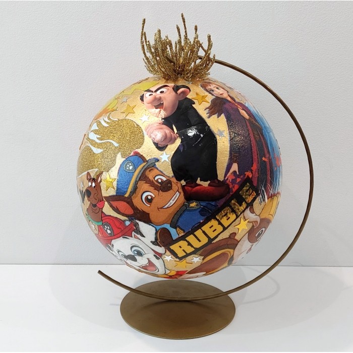 Na złotym tle bombki pojawiają się bohaterowie najbardziej ukochanych bajek i filmów animowanych, takich jak: Kraina Lodu, Psi Patrol, Smerfy, Minionki, Scooby-Doo, Arielka, Pokemony, Epoka Lodowcowa, Shrek czy Spider-Man. To uniwersalna dekoracja, która zachwyci zarówno najmłodszych, jak i dorosłych gości.