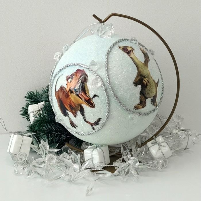 Podaruj swojej choince bajkowy, lodowy blask z bombką decoupage inspirowaną Epoką Lodowcową.
