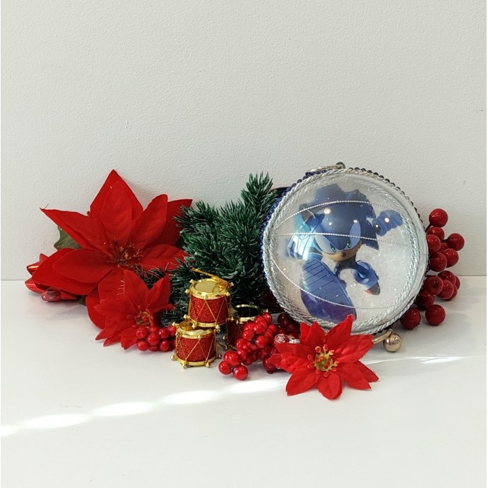 Z przodu bombki widnieje postać Sonica, otoczona subtelną warstwą sztucznego śniegu, co nadaje całości bajkowego i zimowego klimatu. Z tyłu natomiast wykonano imitację postarzanego lustra z eleganckim napisem „Sonic”, podkreślającym kolekcjonerski charakter ozdoby.