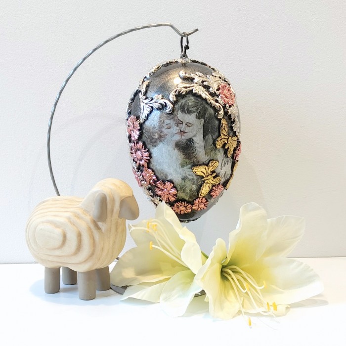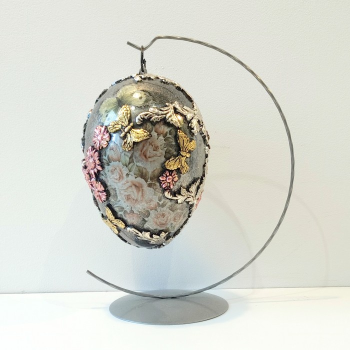 - Jajko wykonane jest na bazie styropianu, idealne do zawieszenia na stojaku i gałązce bzu.