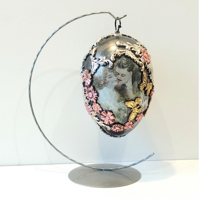 Jajko zostało wykonane na bazie akrylowej formy, a jego wnętrze pokryto specjalnymi odczynnikami, które tworzą spektakularny efekt lustra. Powierzchnia subtelnie odbija światło i otoczenie, dzięki czemu dekoracja żyje – zmienia się wraz z przestrzenią.