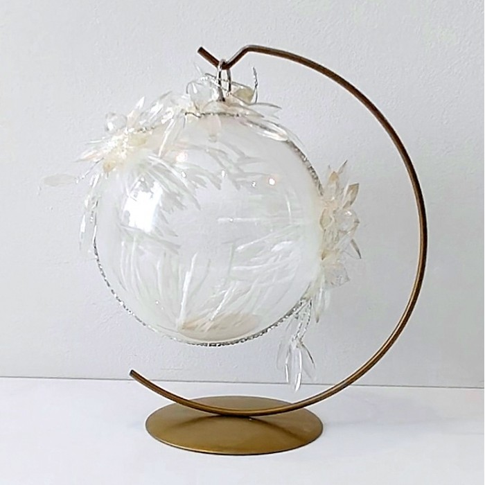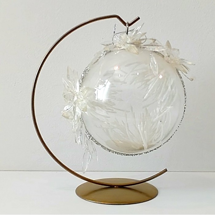 Bombka wykonana na bazie arylowej kuli, idealna do zawieszenia na stojak lub choinkę. Sprzedawana bez stojaka.