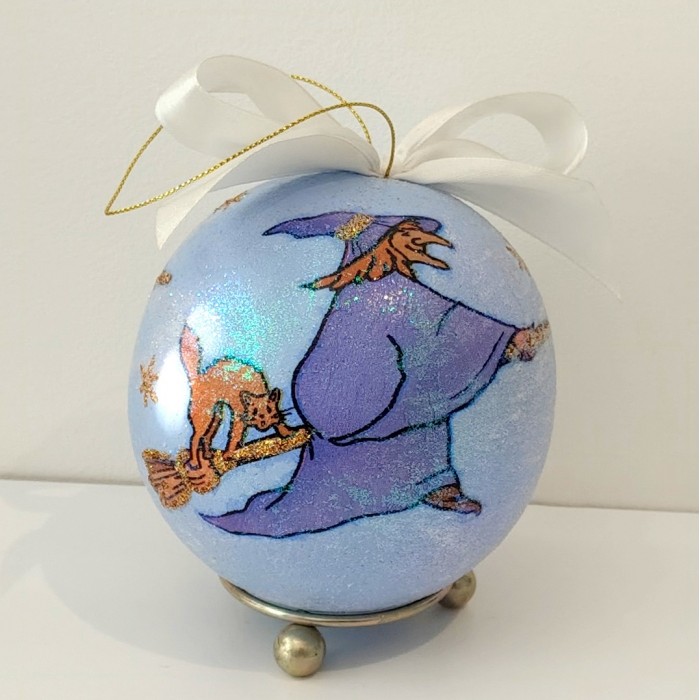 Na powierzchni ozdoby ukazano Babę Jagę lecącą na miotle, której towarzyszy tajemniczy kot. Scena pełna ruchu i fantazji przenosi wprost do świata legend i opowieści, dodając choince niepowtarzalnego charakteru.
